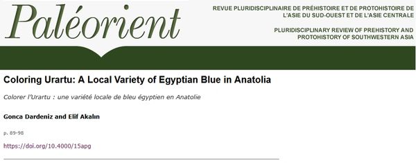 Abstrack: Egyptian blue is the first synthetic pigment admired in the ancient world due to its vivid blue hues. The Assyrian and Urartian architectural designs contain elements rich in Egyptian blue, requiring significant consumption of this pigment in the 1st millennium BCE. This blue-colored world brings questions regarding the manufacturer and potential production zone(s) of Egyptian blue. Of great importance is the possible production zones and techniques outside and besides Egypt. This paper discusses a potential manufacture in eastern Anatolia, around Lake Van during the 1st millennium BCE. This production might meet the demand of the Urartian kingdom and—possibly—beyond with the vivid blue tones of a local version of Egyptian blue.